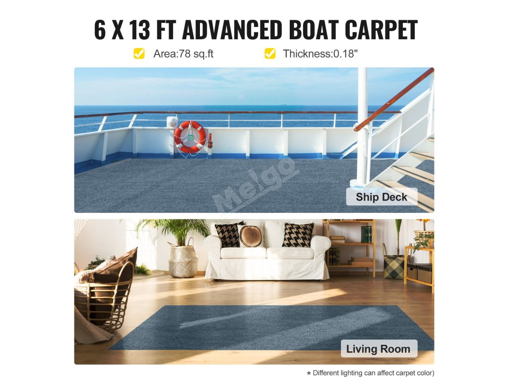 Koberec na loď je vyroben z polyesterového vlákna profesionální kvality, které zaručuje měkký pocit a dlouhou životnost.
