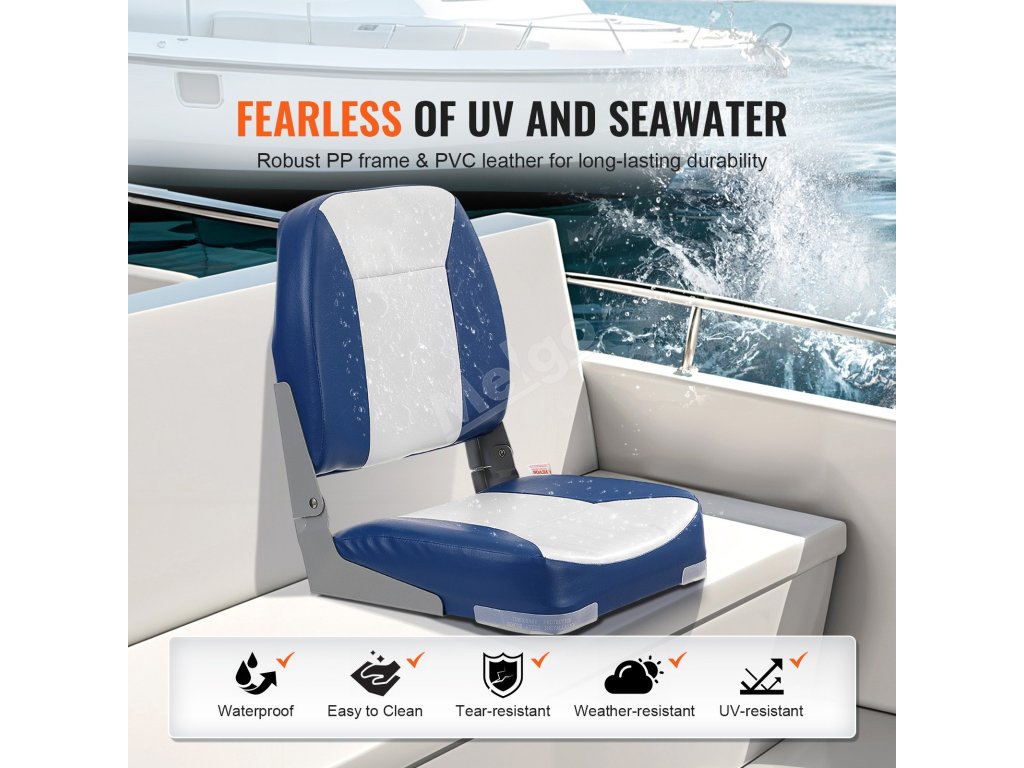Naše sedadla pro pontonové čluny, vyrobená z PVC kůže a elastické houby, jsou konstruována tak, aby odolala mořskému prostředí. Jsou vodotěsné, odolné proti UV záření a roztržení, což zaručuje, že sedadla do rybářských člunů vydrží slunce, déšť i mořské podmínky. Navíc se snadno čistí a jejich údržba vyžaduje méně času.