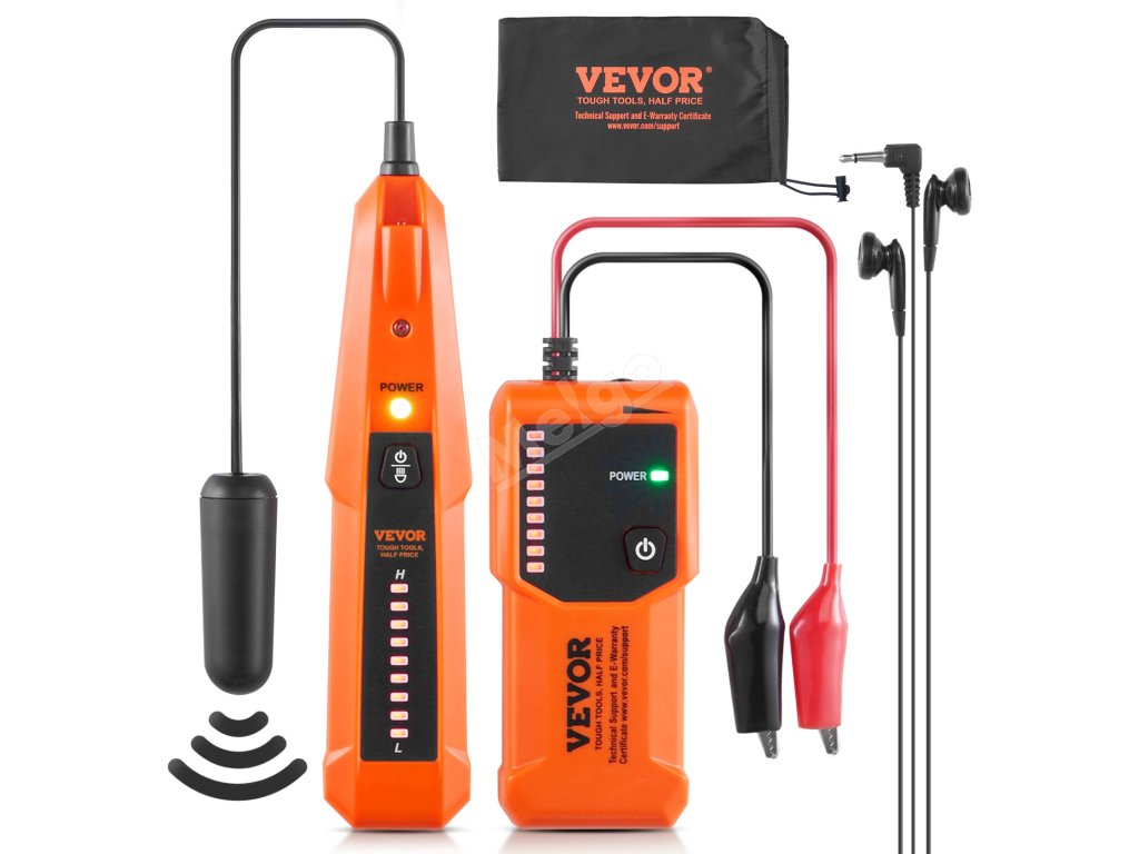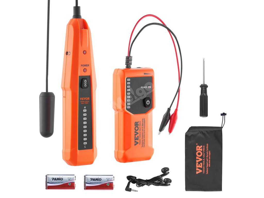 Náš lokátor podzemních kabelů je dodáván se sluchátky, aby bylo možné jasně slyšet zvukové pokyny i v hlučném prostředí a přesně určit místo přerušení kabelu. Kromě toho vám poskytujeme brašnu na přenášení a šroubovák, abyste si snadno poradili v různých situacích.