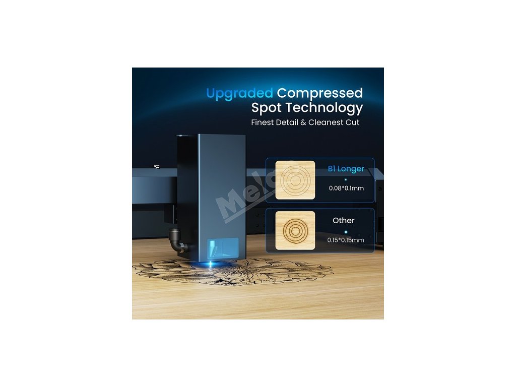 Laser B1 je poháněn 32bitovou základní deskou, která umožňuje rychlost gravírování až 36 000 mm/min, což je čtyřikrát více než u běžných laserových gravírek. Navíc jsou použity tiché ovladače TMC2209, které účinně snižují provozní hluk a zajišťují rychlejší a příjemnější zážitek.