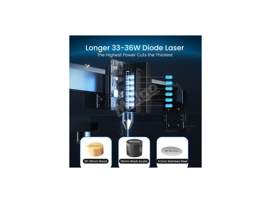 33W laser dokáže řezat nebo gravírovat více než 1 000 různých materiálů, jako je dřevo, ocel, kůže, stříbro, akryl, látka a další.