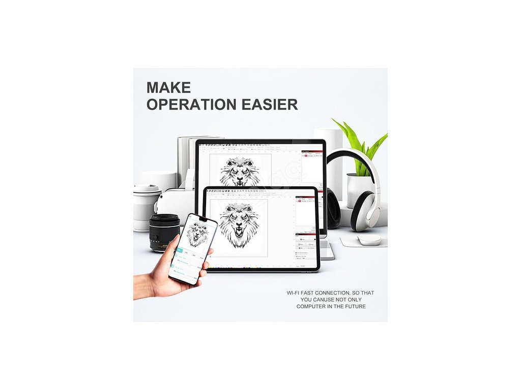 Podporuje funkce offline gravírování a řezání, takže při gravírování a řezání není nutné připojení k počítači, což vám usnadní ovládání a splnění různých požadavků pro kutily. Pro přenos dat je podporováno připojení Wi-Fi, kabel USB, aplikace APP a karta TF.