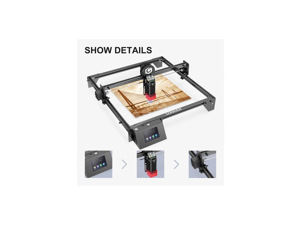 Ray5 10w s 3,5palcovým dotykovým displejem má nové funkce, jako je více způsobů přenosu dat a ovládání více strojů. Ve srovnání s jinými laserovými gravírkami dokáže gravírovat až více než 1 000 materiálů.