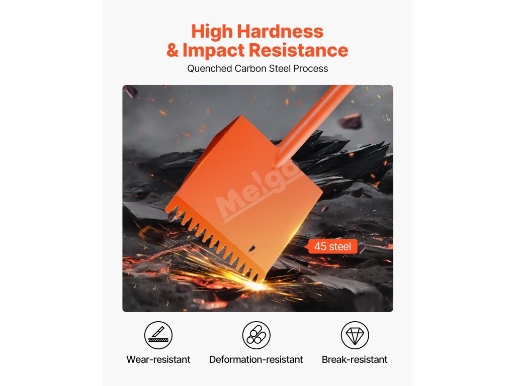 Tento lehký nástroj na odstraňování šindelů má ergonomickou rukojeť z PP, která zaručuje pohodlné používání bez únavy. Čepel široká 8 palců je vyrobena z tepelně zpracované 45# oceli a unese až 88,18 kg. Ideální pro odstraňování asfaltových, dřevěných a kompozitních šindelů při demolici střech.