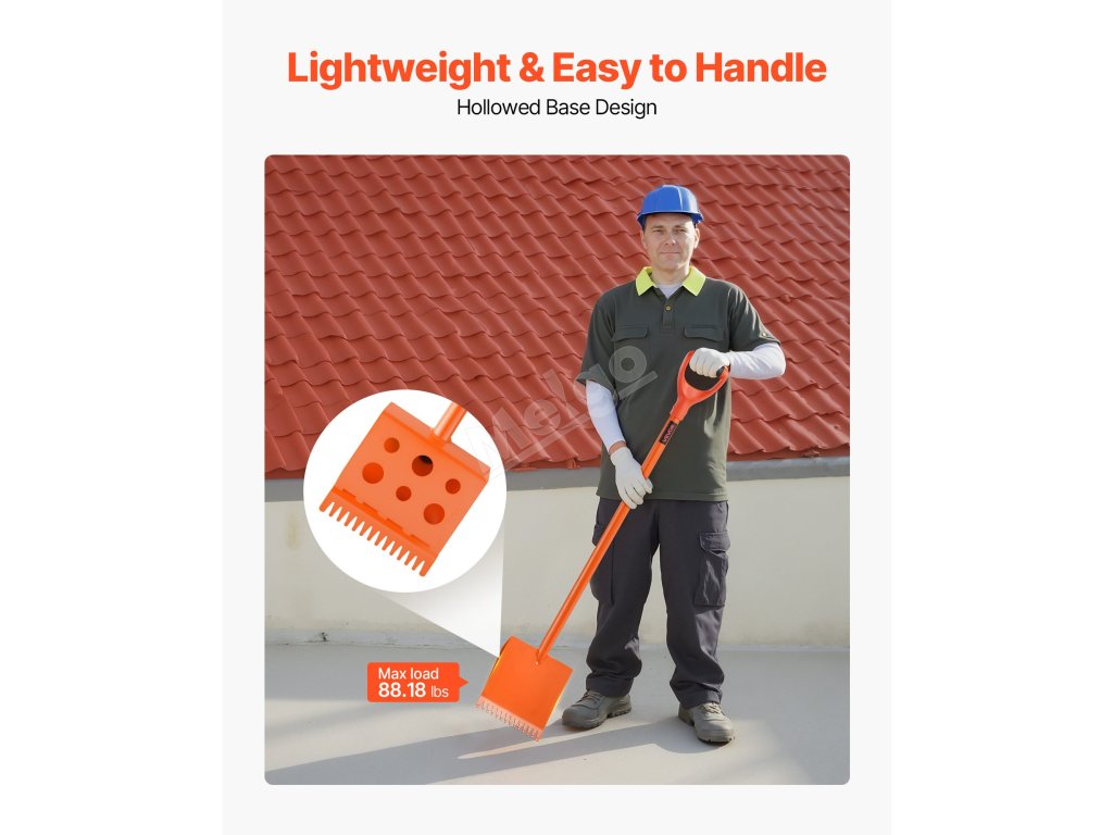 Tato střešní lopata využívá principu páky a optimalizuje délku odporového a silového ramene pro snadné ovládání. Měkká rukojeť s PP povlakem zajišťuje bezpečný, neklouzavý úchop a zároveň snižuje vibrace, což poskytuje pohodlí při dlouhých pracích.