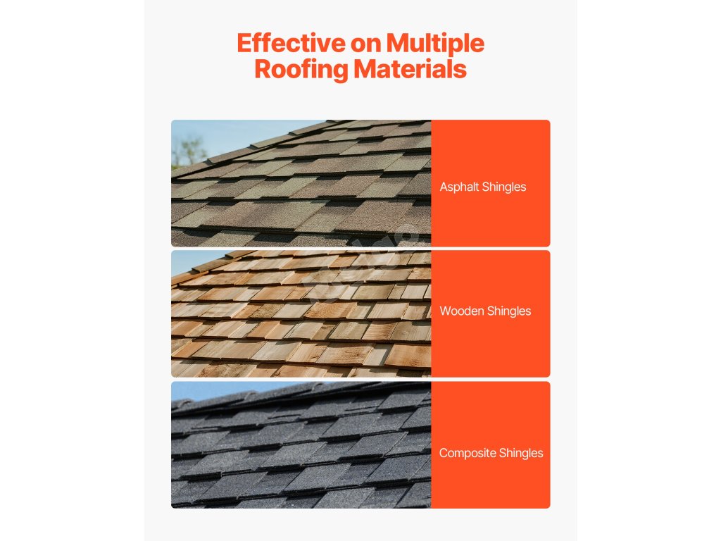 Tento nástroj na odstraňování šindelů a hřebíků je navržen tak, aby odolával povětrnostním vlivům, slunečnímu záření bez vyblednutí nebo koroze a zachoval si stabilní výkon v různých podmínkách.
