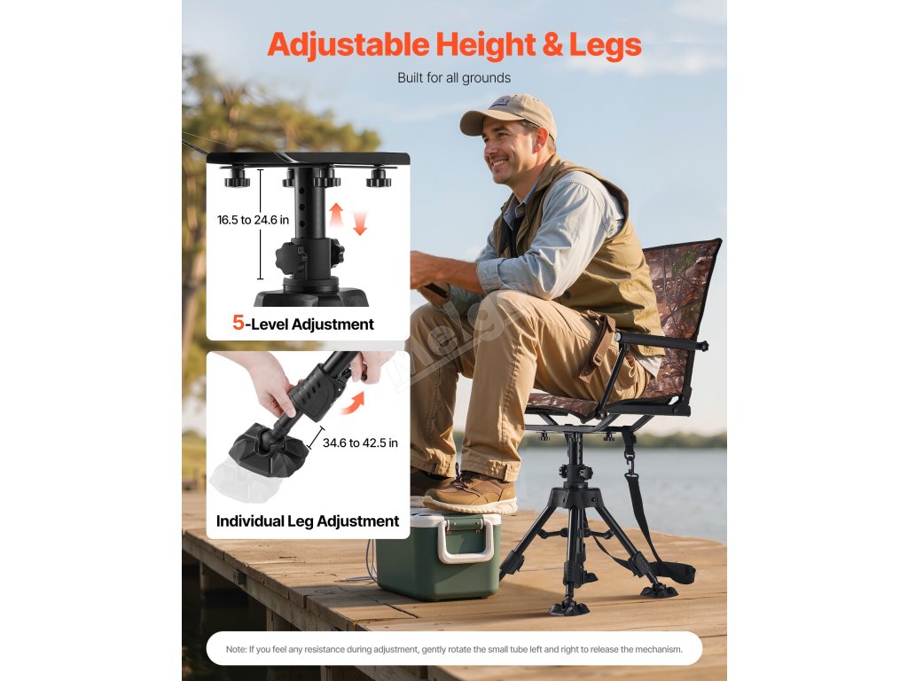 Lovecké skládací otočné křeslo 360° s opěrkami nosnost 158 kg