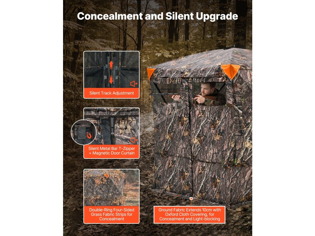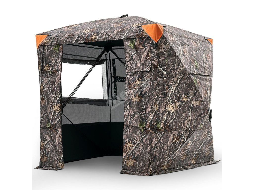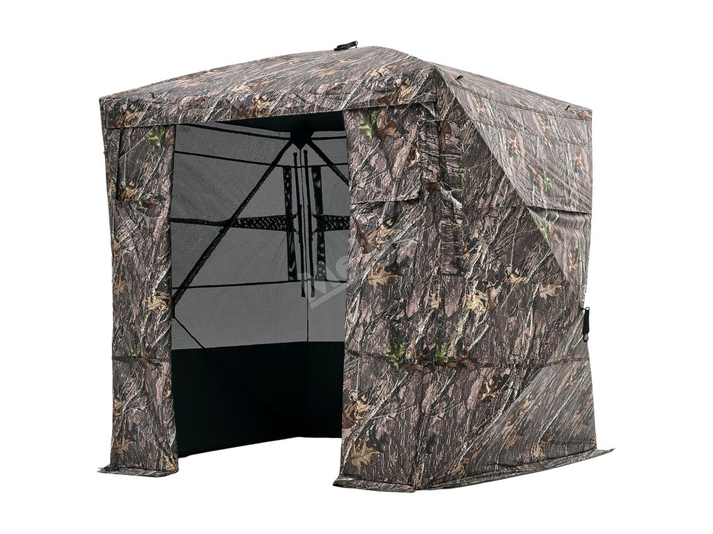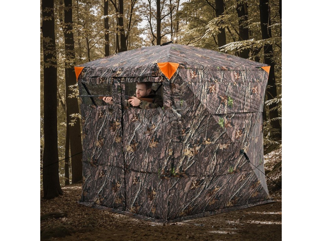 Lovecký úkryt pro 4–5 osob, 270° kamufláž, tiché magnetické dveře