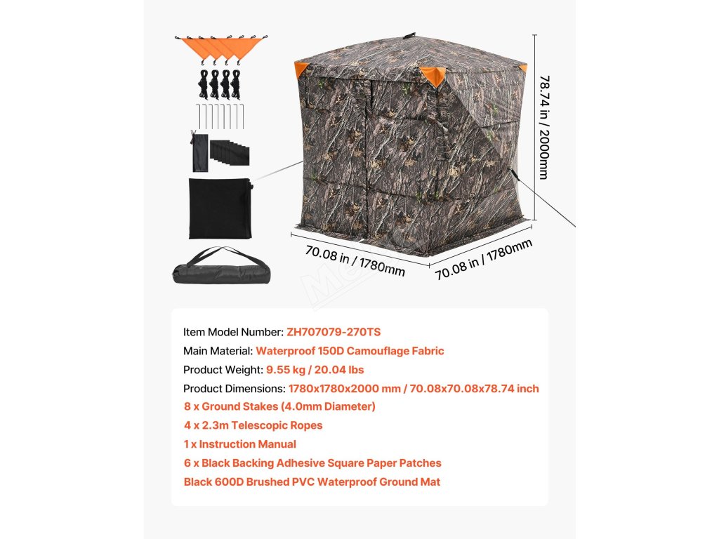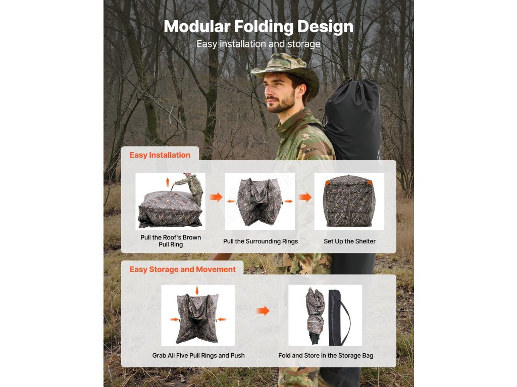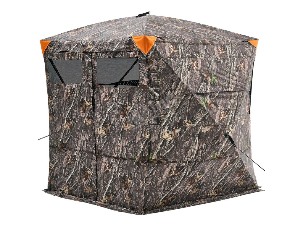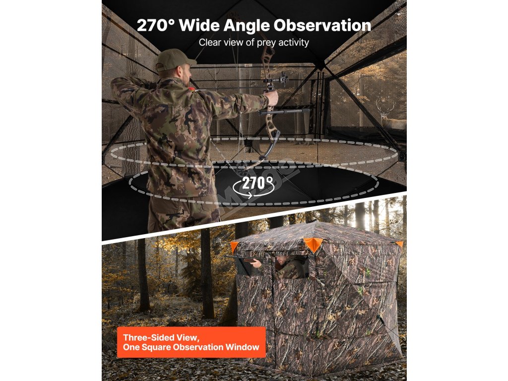 Lovecký úkryt pro 4–5 osob, 270° kamufláž, tiché magnetické dveře