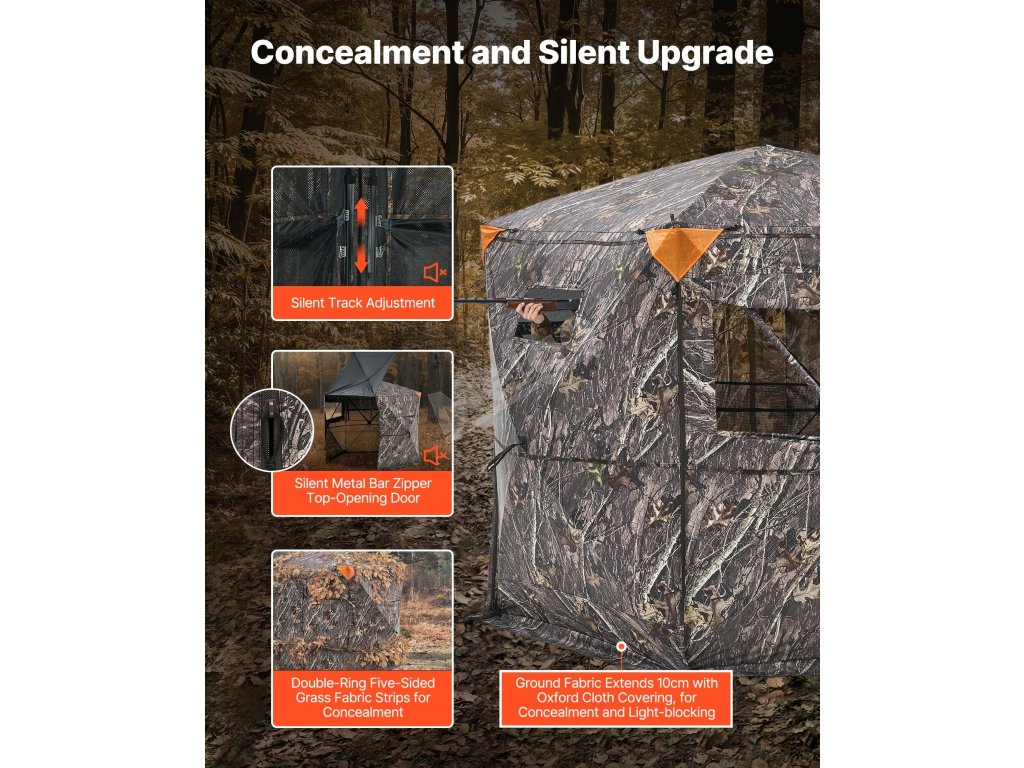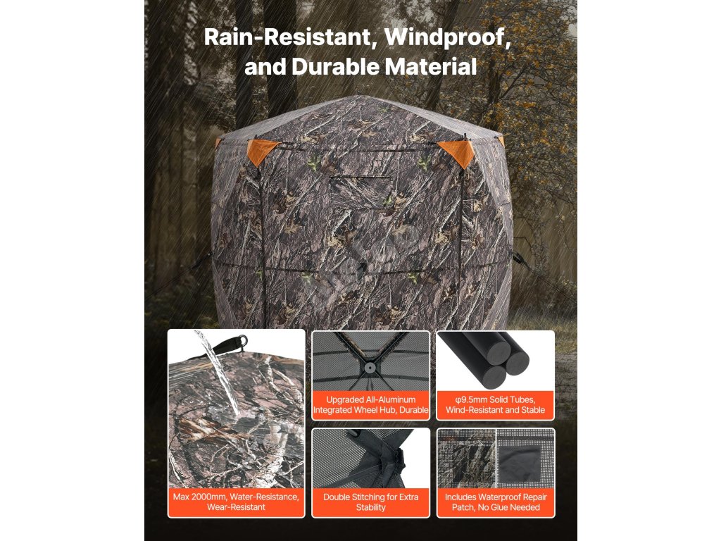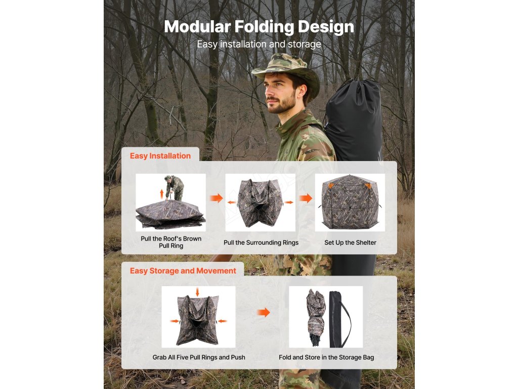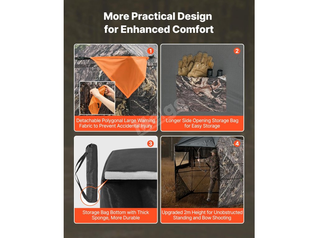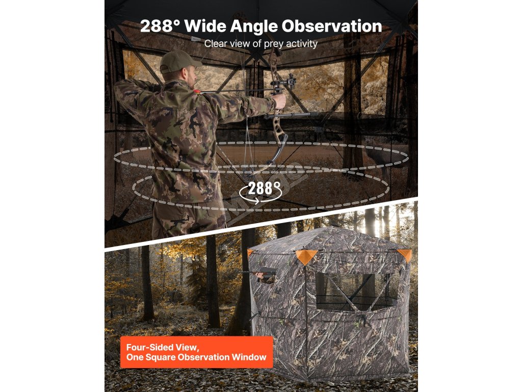 Lovecký úkryt pro 6–7 osob, 288° výhled, 5 stran, maskovací vak