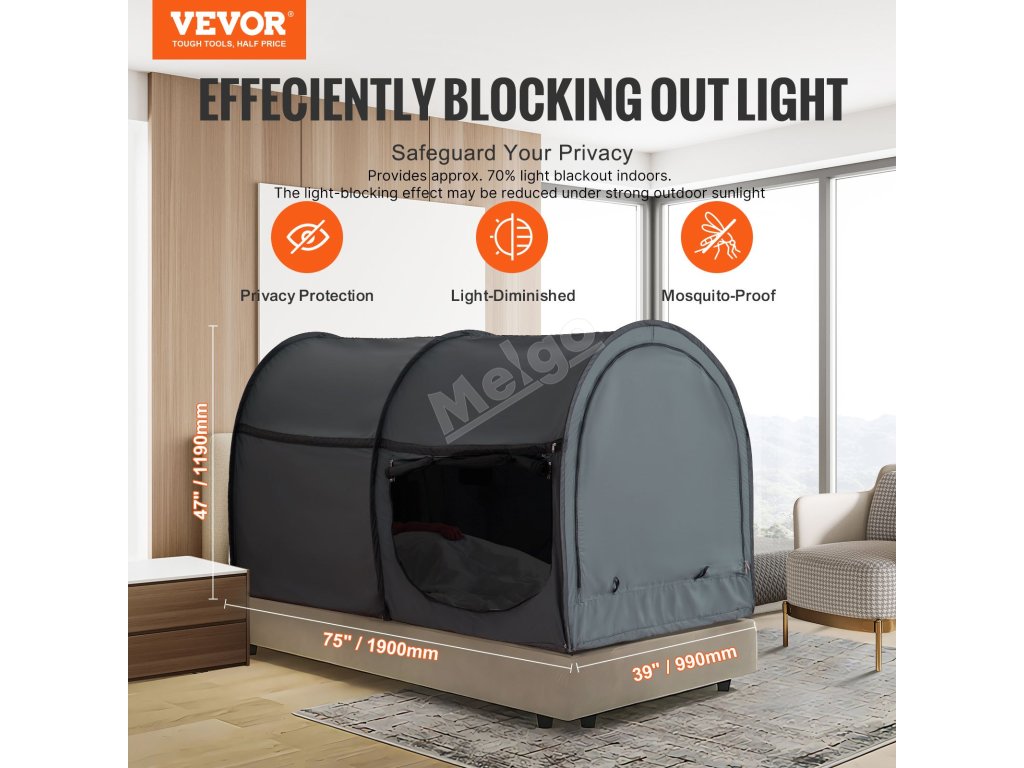 Stan na lůžko o rozměrech 75" x 39" x 47" (1900 x 990 x 1190 mm) zajišťuje blokování světla a soukromí v jakémkoli prostoru. Je vybaven čtyřmi vstupními místy se síťovinou a látkou pro zajištění soukromí, jakož i kapsou na telefon, háčkem na noční světlo a suchým zipem pro nabíjení. Je postaven z pevných tyčí z vláken a odolné tkaniny a váží 80 g (0,18 kg).