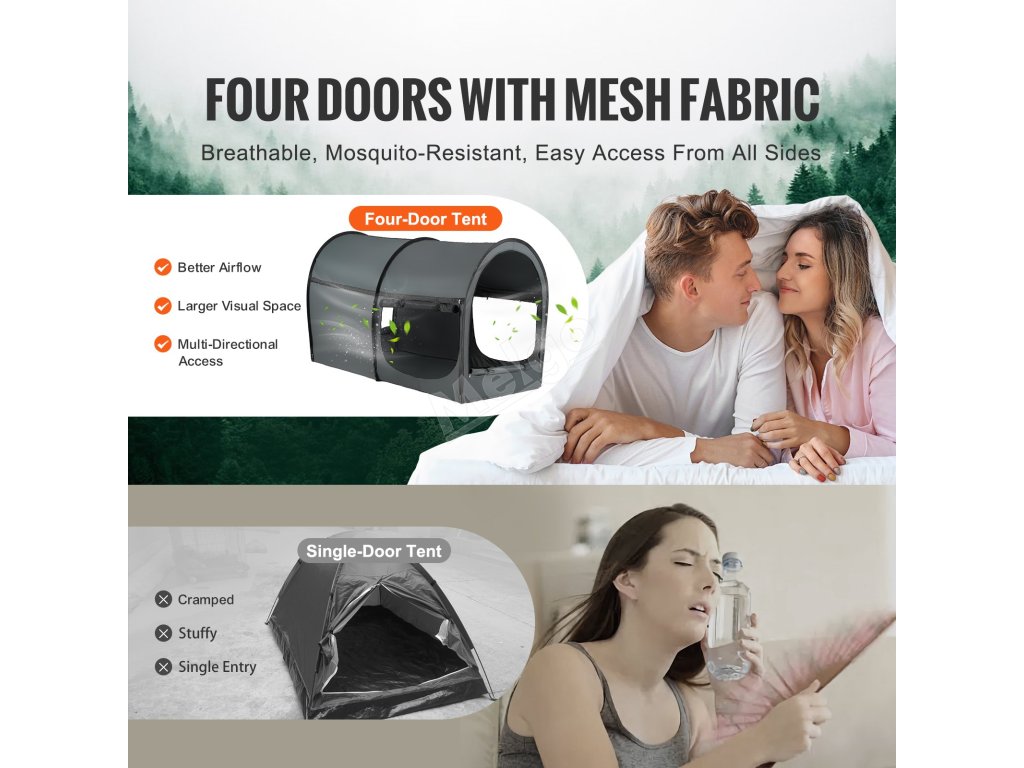 Ložní stan 4 dveře prodyšný zatemňující 0.28 in tyče 190×99×119cm