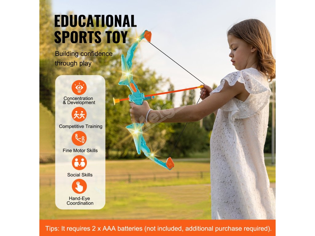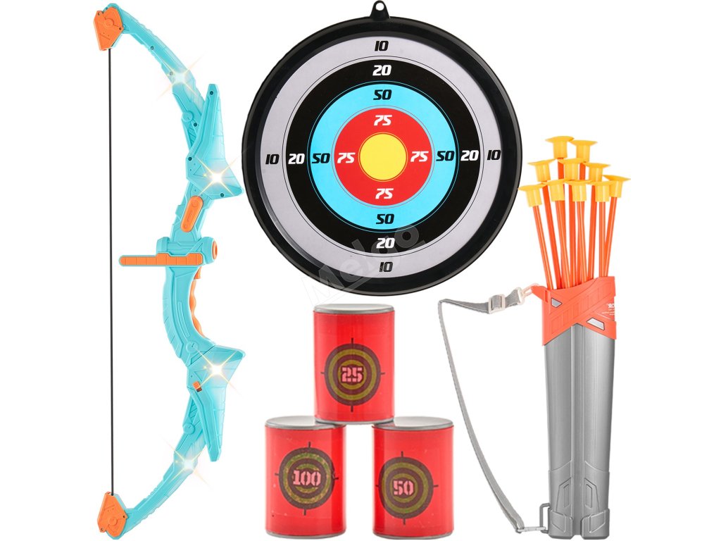 Luk a šípy pro děti s led světlem, 10 sacích šípů, terč, pouzdro