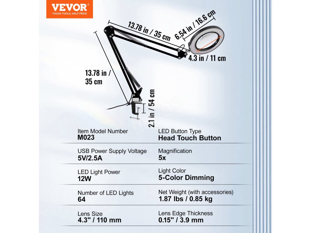Zažijte pohodlné osvětlení s lupou VEVOR