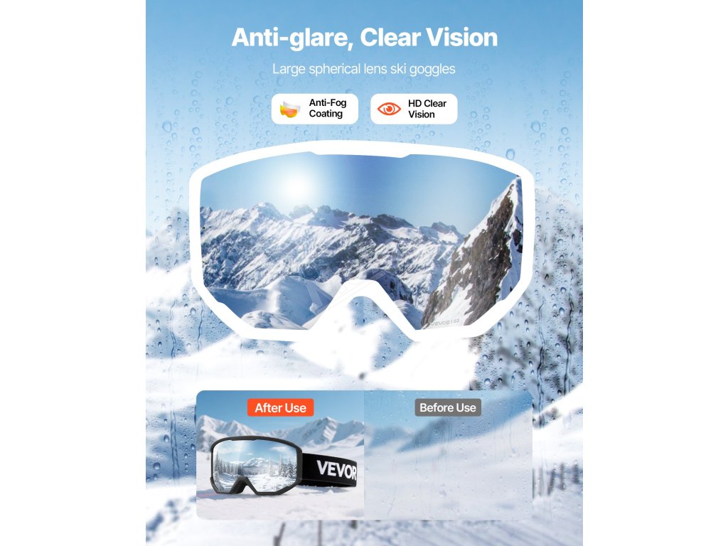 Pokročilá cylindrická čočka sněhových brýlí nabízí skutečné vidění bez zkreslení 1:1, které obnovuje přirozený pohled na sjezdovky. Mírné zakřivení snižuje namáhání očí a je ideální pro profesionální lyžaře, kteří vyžadují přesný odhad terénu.