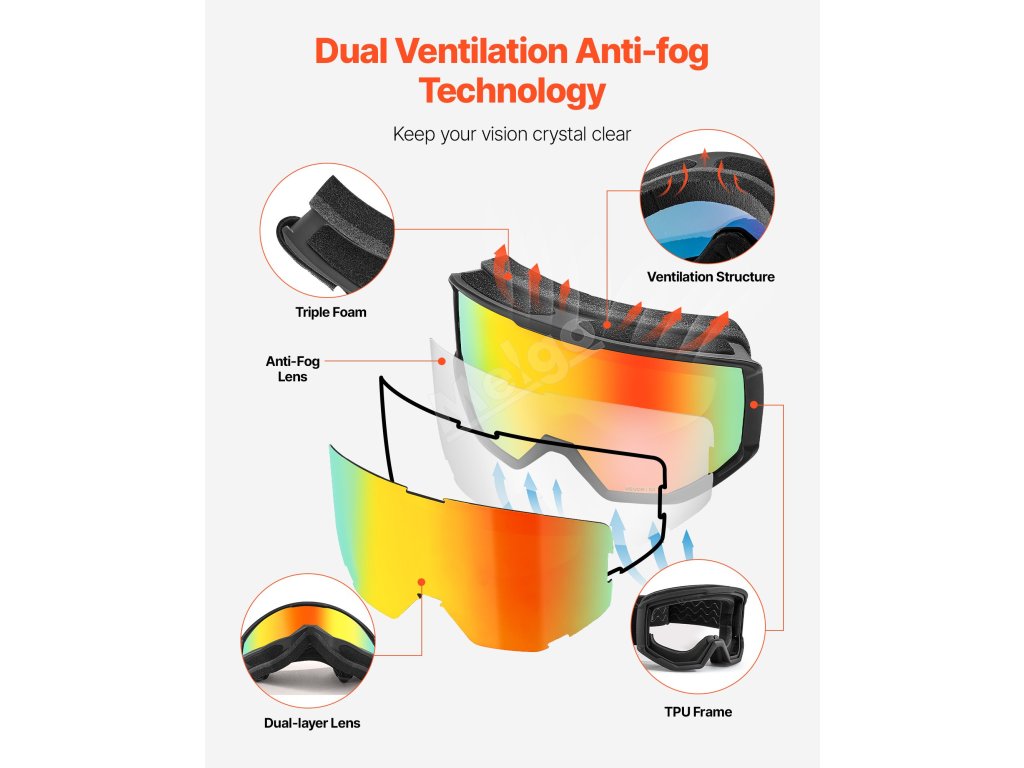 Lyžařské brýle s cylindrickými čočkami, oranžový povlak, otg