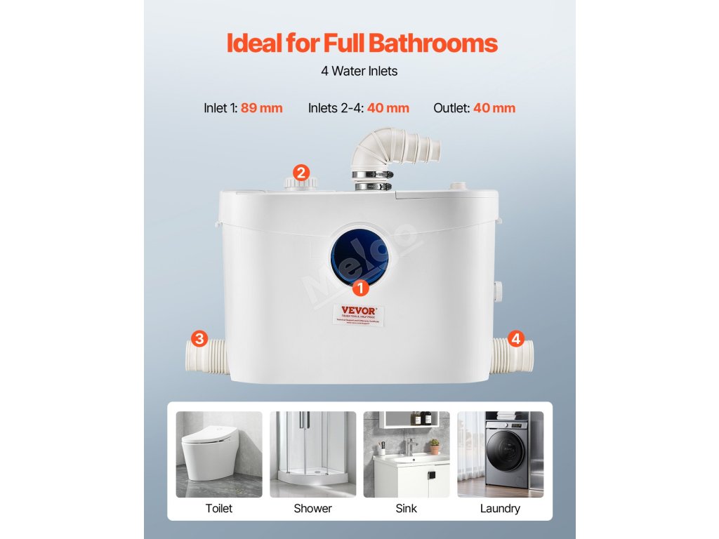 Potřebujete rychlý a bezproblémový způsob likvidace odpadní vody? Toto macerátorové čerpadlo nabízí výkonný 900W měděný motor, 40 stop vysoký zdvih a velký průtok 48 GPM, díky čemuž si snadno poradí s odpadní vodou. Je ideální pro vaši toaletu, vanu, sprchu a prádelnu a představuje spolehlivé řešení pro bezproblémovou likvidaci vody.