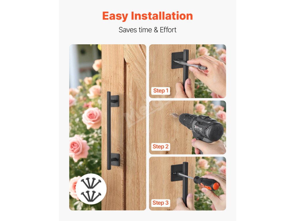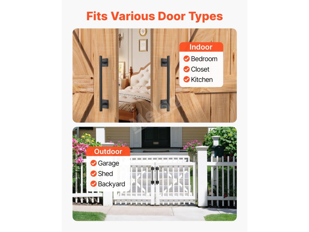 Klika na vrata od plotu, vrata od stodoly, kůlny na nářadí, zahradní brány a dveře na terasu se snadno přizpůsobí různým typům vrat.