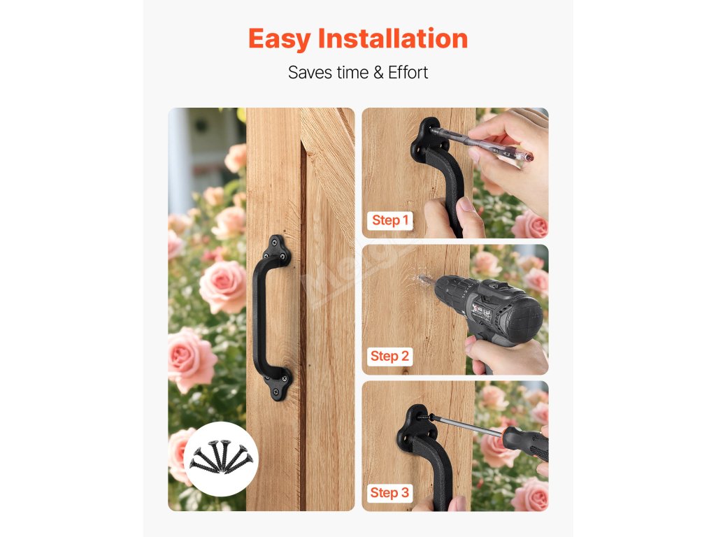 Klika na vrata od plotu, vrata od stodoly, kůlny na nářadí, zahradní brány a dveře na terasu se snadno přizpůsobí různým typům vrat.
