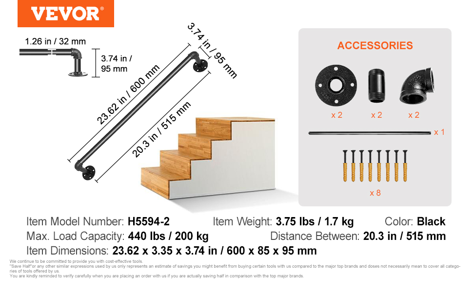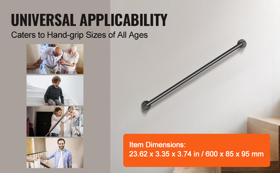 Madlo na schody 61 cm, trubkové, uhlíková ocel, pro montáž na zeď
