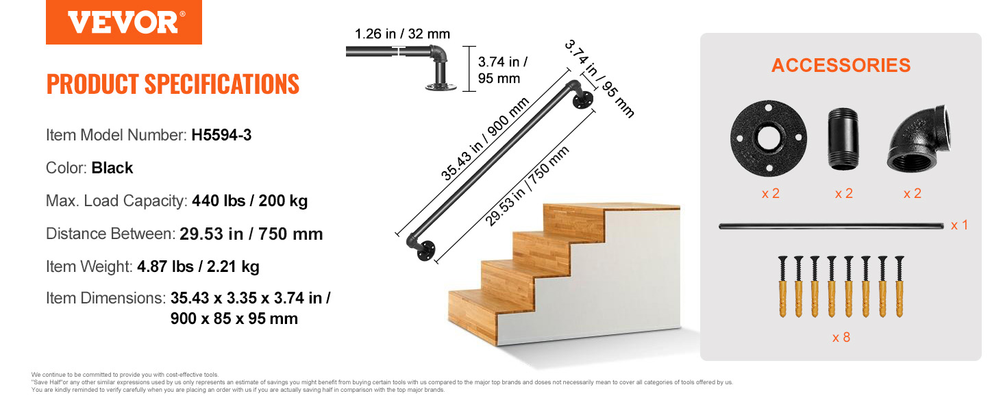 Madlo na schody 91,4 cm, nosnost 199,6 kg, uhlíková ocel, na zeď
