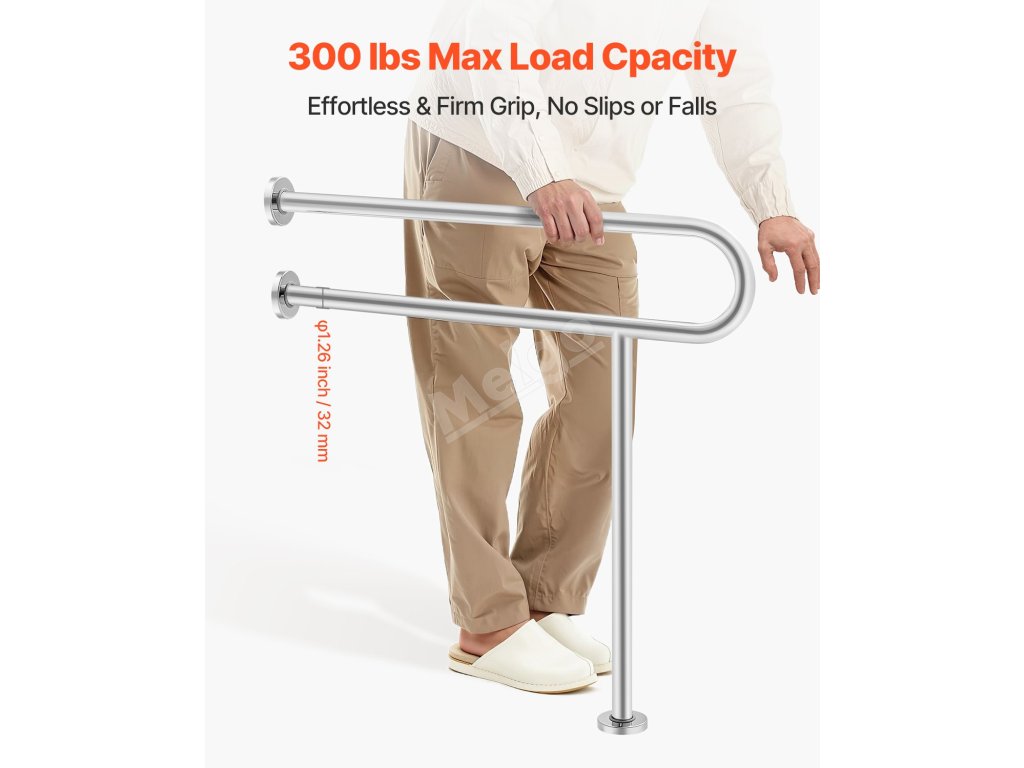 Madlo na toaletu 31.5 inch u tvar 304 nerez s nohou protiskluz, 300 lbs