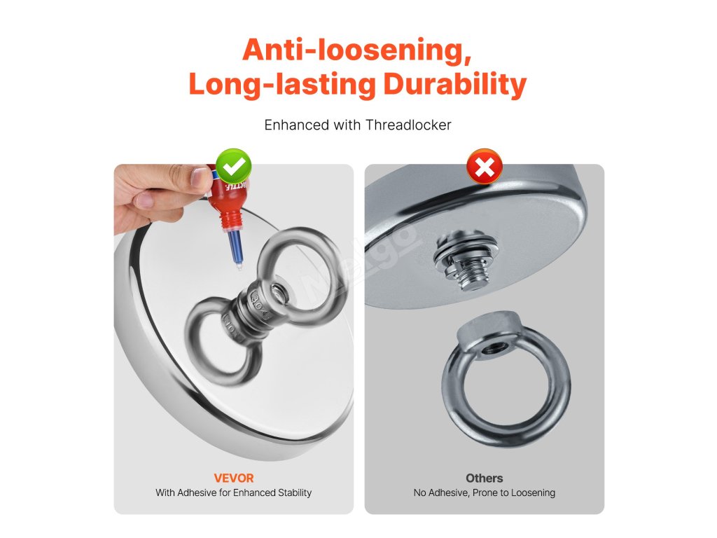 Rybářský magnet i příslušenství jsou vyrobeny z nerezové oceli nebo potaženy vrstvami odolnými proti korozi. Jsou vodotěsné, odolné proti oděru a účinně zabraňují znehodnocení, což zajišťuje větší trvanlivost. Nemusíte se obávat, že by vybavení ovlivnila rez nebo degradace.