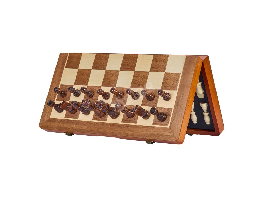 Magnetická dřevěná šachová sada 15 inch/38.1 cm 2v1 skládací