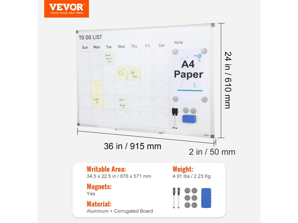 Táto kalendárová tabuľa má tiež skvelý pomer ceny a kvality. Ponúka kombináciu kvality, funkcií a cenovej dostupnosti. Vďaka tomu je rozumnou investíciou pre každú domácnosť, kanceláriu alebo učebňu. Odolnosť tabule zaručuje dlhodobé používanie a hodnotu. So spoločnosťou VEVOR získate viac než len vysokokvalitnú tabuľu.