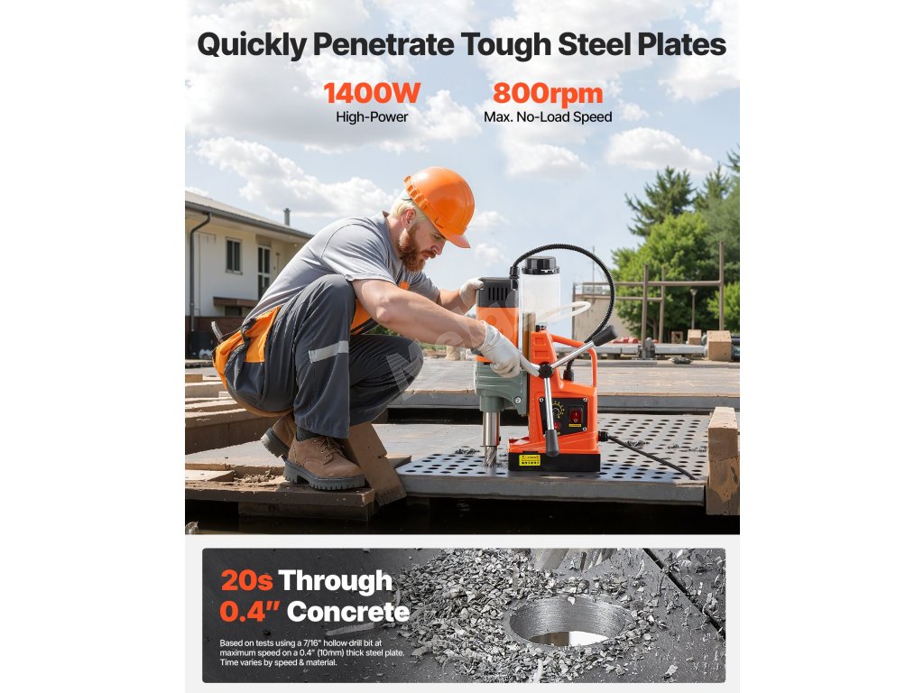 Tato 1350W magnetická vrtačka umožňuje rychlé a stabilní vrtání do různých druhů oceli. Magnetická síla 2810 lbf ji udržuje pevně uchycenou pro přesný výkon bez smyku. Je vybavena nastavitelnými otáčkami. Toto nářadí je navrženo s ohledem na efektivitu a pohodlí a umožňuje snadné a profesionální vrtání.