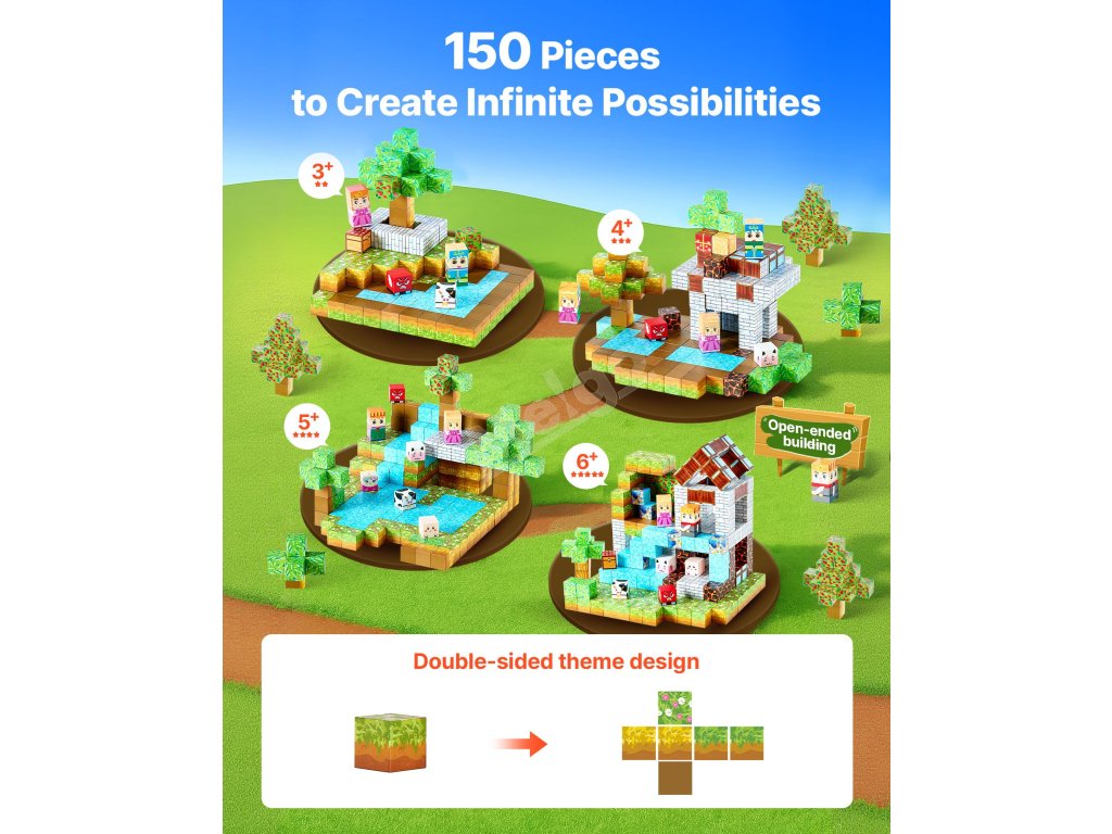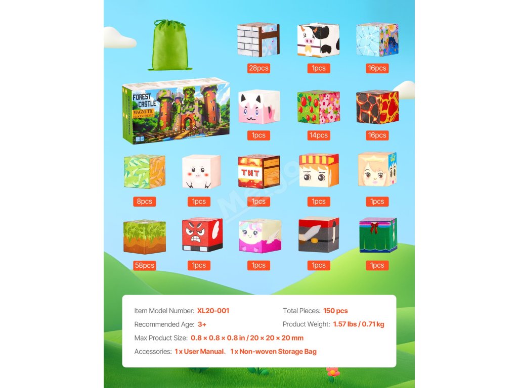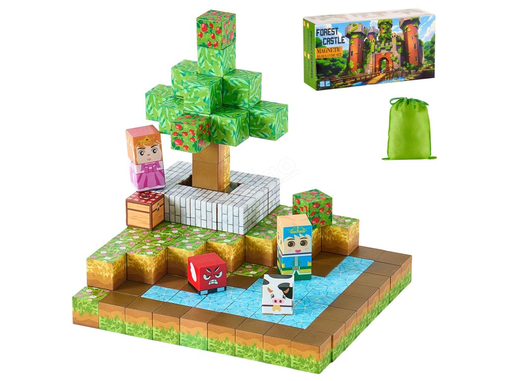 Magnetické kostky 150 pcs, sada lesní hrad, pro děti od 3 let