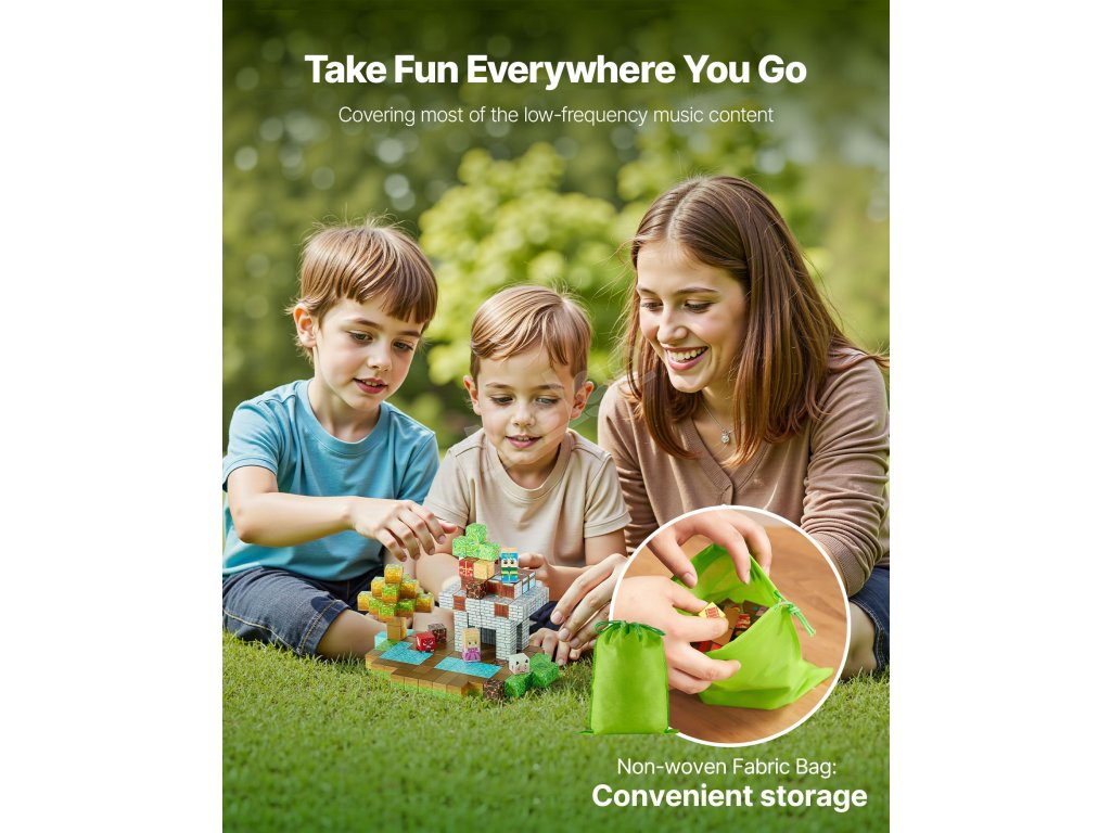 Naše magnetické stavebnice jsou dodávány s praktickou látkovou taškou pro snadné skladování a venkovní zábavu. Učte děti organizačním dovednostem a zároveň udržujte vše v pořádku a čistotě!