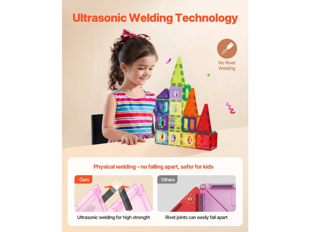 Tyto magnetické stavebnice jsou vyrobeny z vysoce kvalitního materiálu ABS a jsou bezpečné a odolné. Díky absenci lepidel jsou zdravotně nezávadné a neškodné. Hladký povrch a zaoblené hrany zaručují bezpečnou hru, takže se děti mohou bez obav bavit.