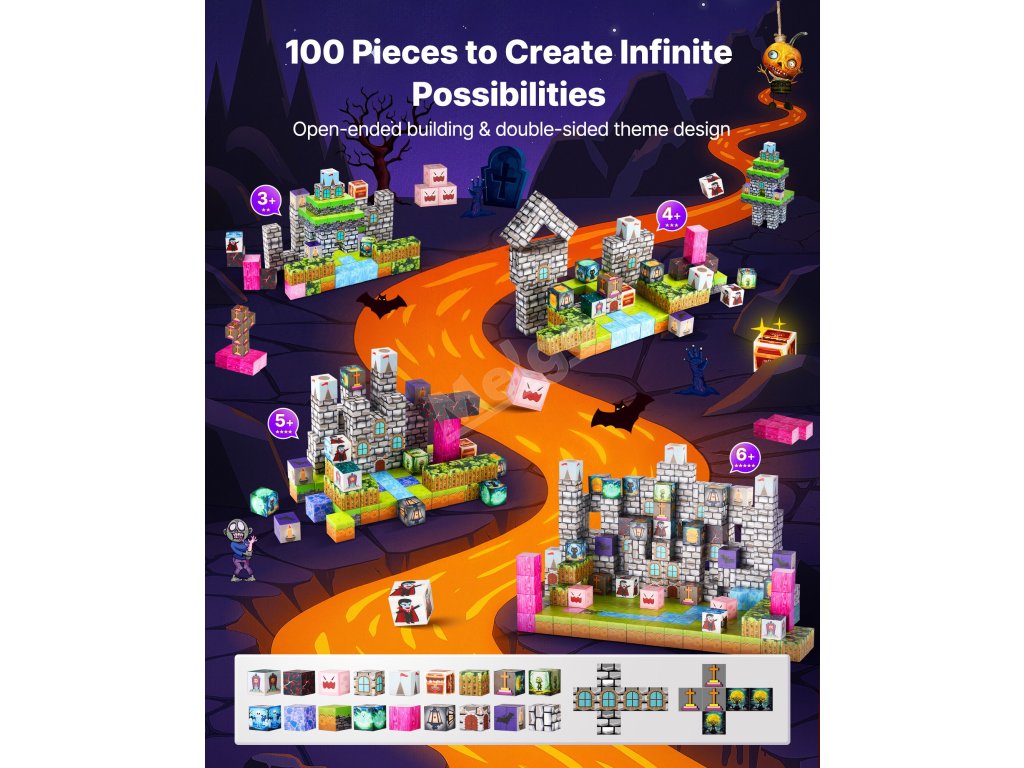 Magnetické stavební kostky 100 ks, montessori senzorické, 3+ let