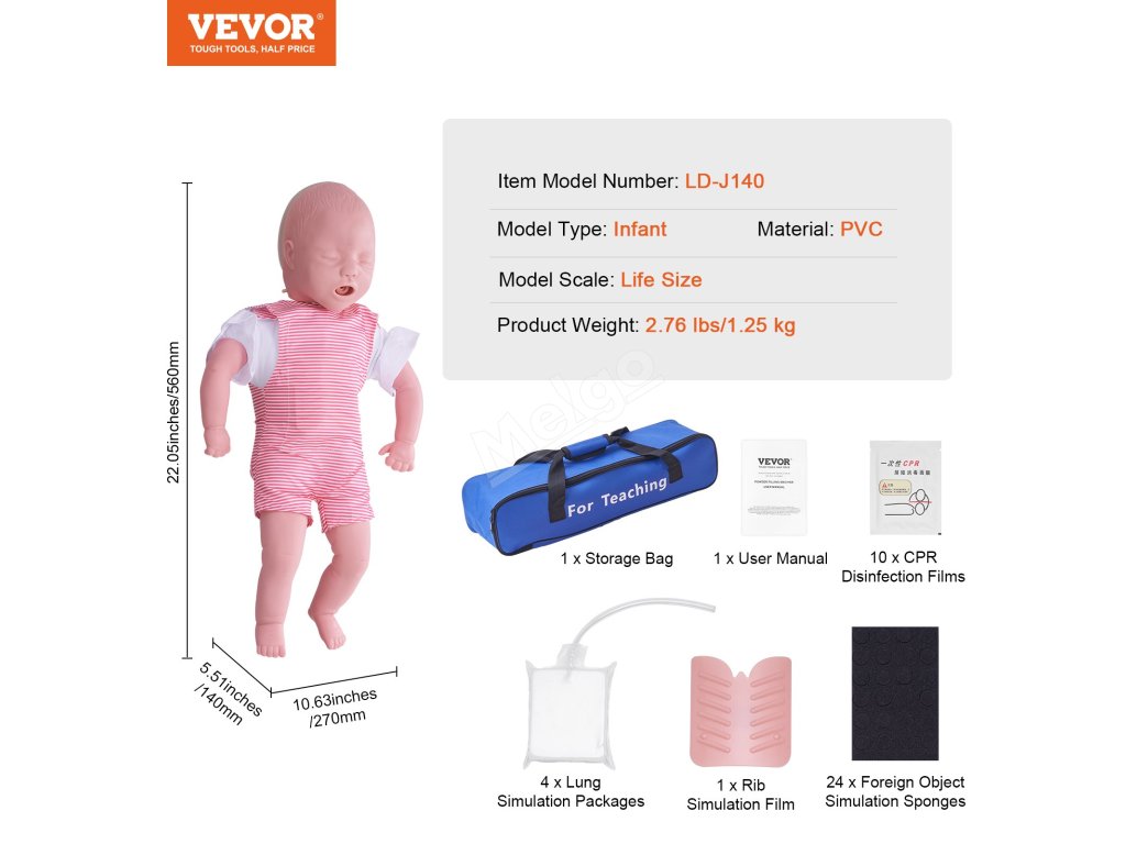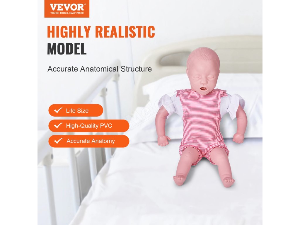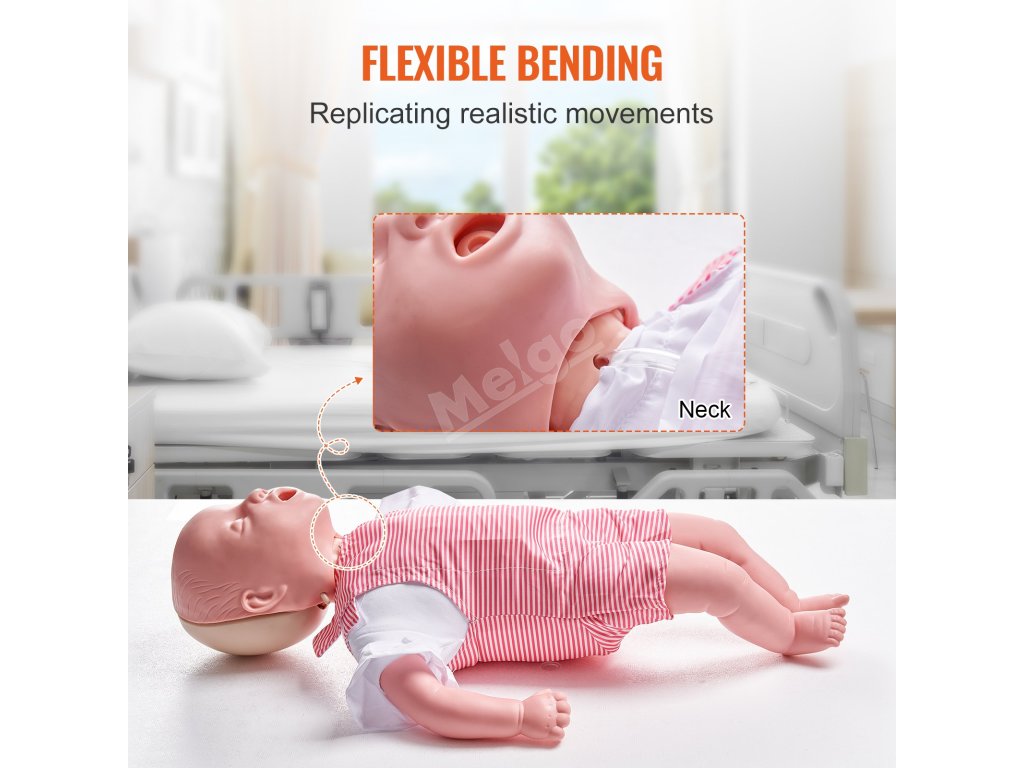 Tato ošetřovatelská figurína dokáže simulovat normální a ucpané dýchací cesty a umožňuje nácvik průniku do dýchacích cest, dušení, rozšiřování hrudníku a standardních resuscitačních postupů.