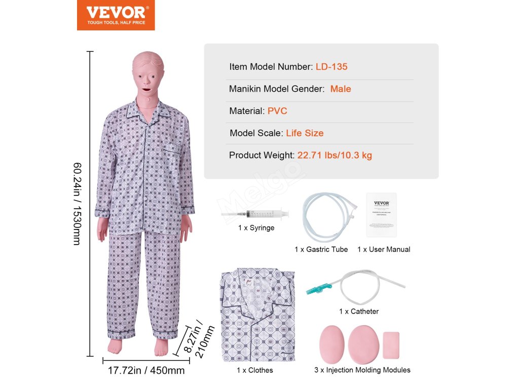 VEVOR Mužská figurína pro výcvik ošetřovatelství
