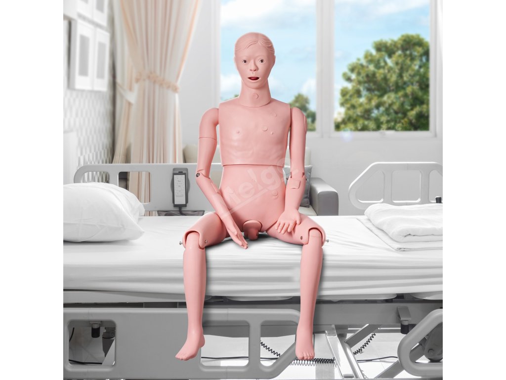Naše ošetřovatelská figurína se vyznačuje přesnou anatomií a vysokou věrností. Napodobuje běžný rozsah lidských postojů a fyziologických činností, čímž napomáhá při výuce ošetřovatelství.
