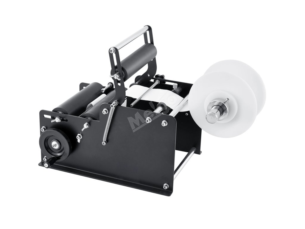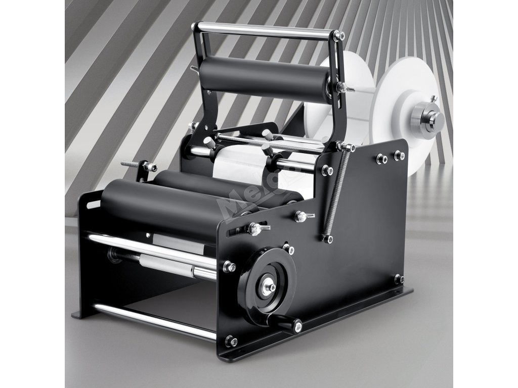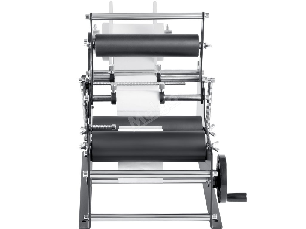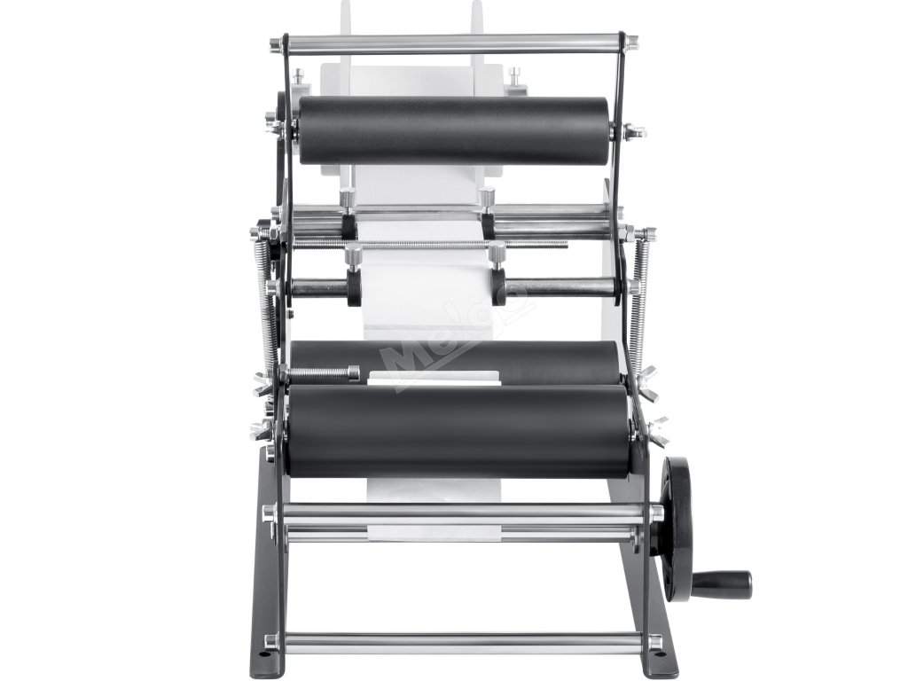 Náš stroj na etiketování lahví se může pochlubit uživatelsky přívětivou otočnou výměnou etiket - není třeba žádných klíčů! Ergonomická ruční klika usnadňuje ovládání a gumový válec zajišťuje hladké etiketování bez bublin.