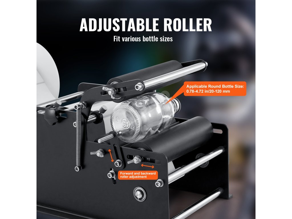 Tento ruční etiketovací stroj pojme různé velikosti kulatých lahví od 0,78 do 4,72 palce/20-120 mm, což z něj činí univerzální řešení pro různá odvětví a typy výrobků. Je to váš univerzální pomocník při etiketování.