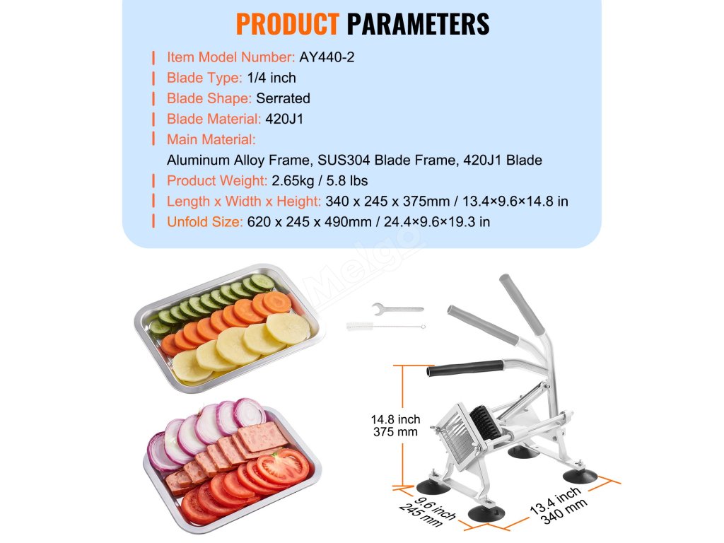 Ruční kráječ zeleniny a ovoce o hmotnosti 2,65 kg lze použít v různých prostředích, jako jsou domácí kuchyně, hotelové kuchyně, restaurace a hamburgery.