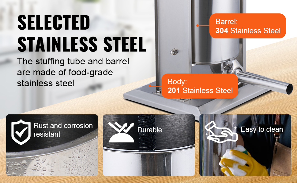 Je vyroben z robustní nerezové oceli, je odolný proti korozi a trvanlivý. Všechny části, které přicházejí do styku s potravinami, jsou vyrobeny z potravinářské nerezové oceli SUS304, která zajišťuje bezpečnost a trvanlivost.