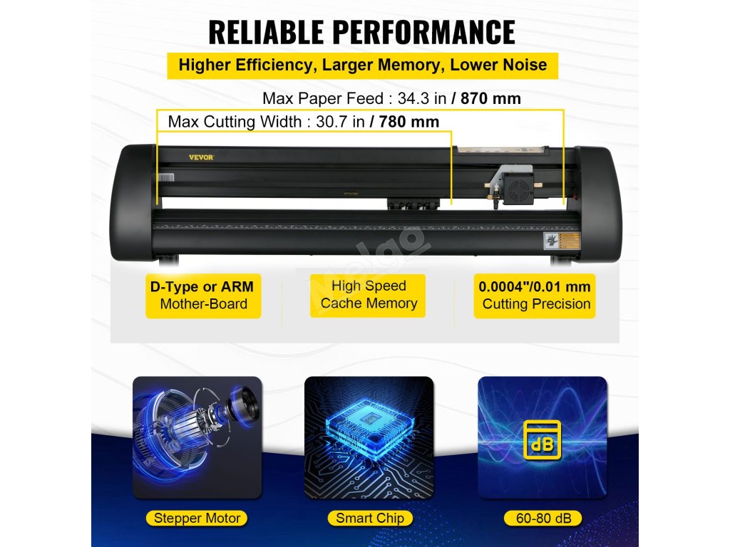 Díky velkému podávání papíru a šířce řezu má tento stroj vysokou přesnost řezání a možnost podávání papíru. Je také vybaven základní deskou typu D a krokovými motory pro lepší výkon.