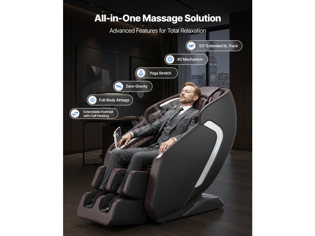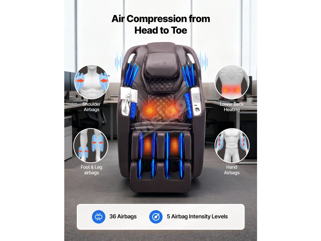 Masážní křeslo 4d celotělové s sl dráhou, zero gravity, 36 airbagů