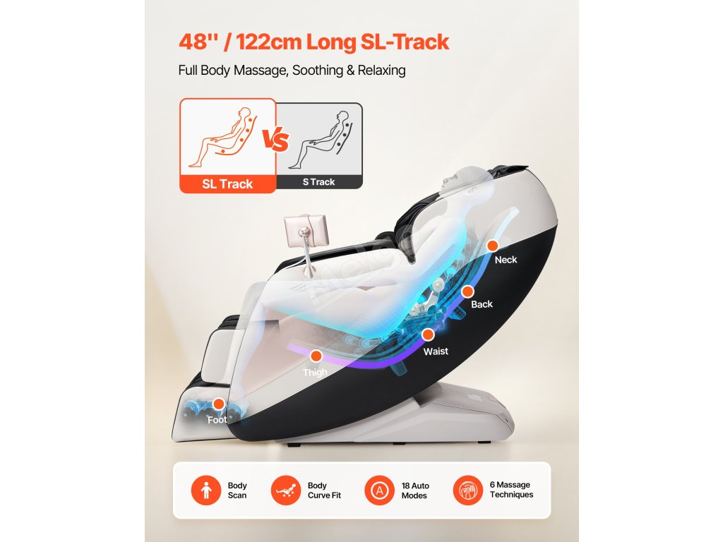 Ergonomická dráha a 3D technologie masáže celého těla automaticky skenují vaše tělo a aktivují 36 inteligentních vzduchových polštářů pro komplexní masáž od ramen až po kotníky - zcela uvolní každý centimetr vašeho těla.