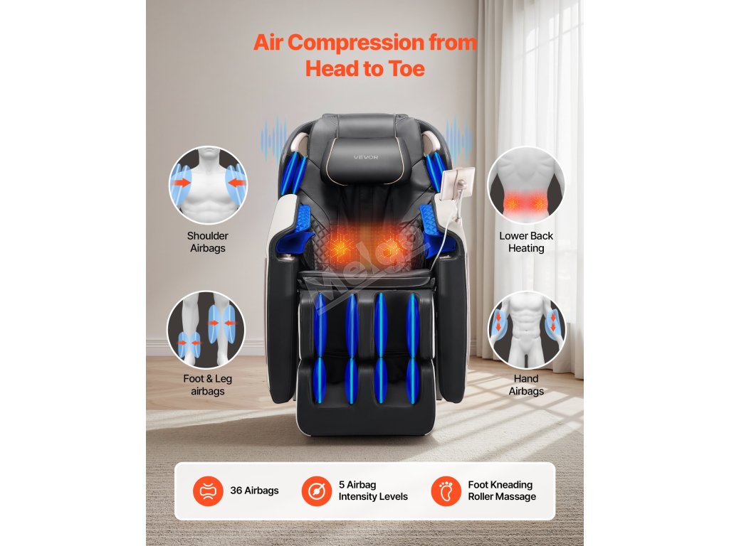 Masážní křeslo celotělové 3d zero gravity, 18 režimů, 36 airbagů