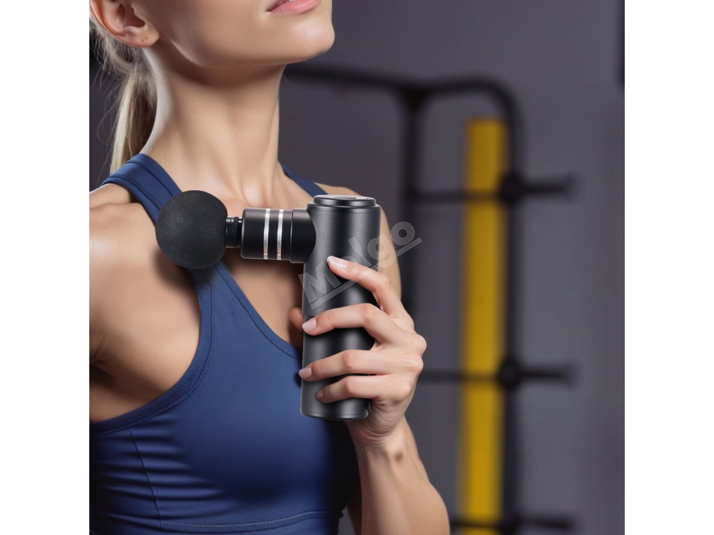 Masážní pistole perkusní mini, 4 rychlosti, 4 hlavice, 12 V 2500 mAh