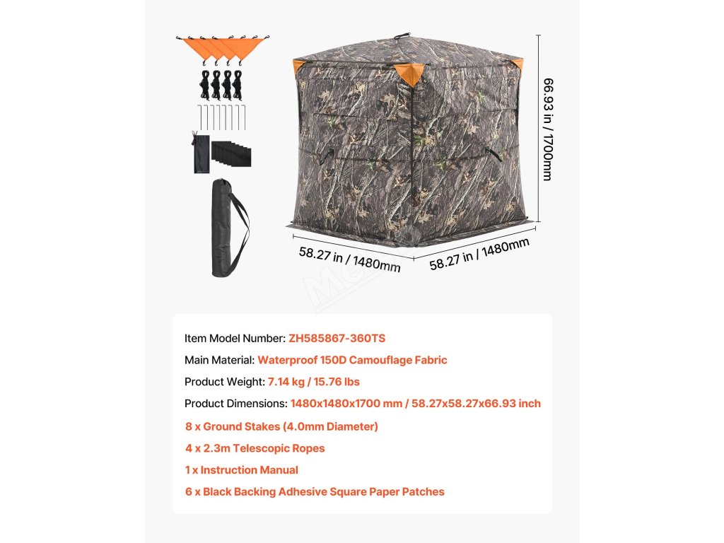 | Hlavný materiál | Nepremokavá 150D maskovacia tkanina |