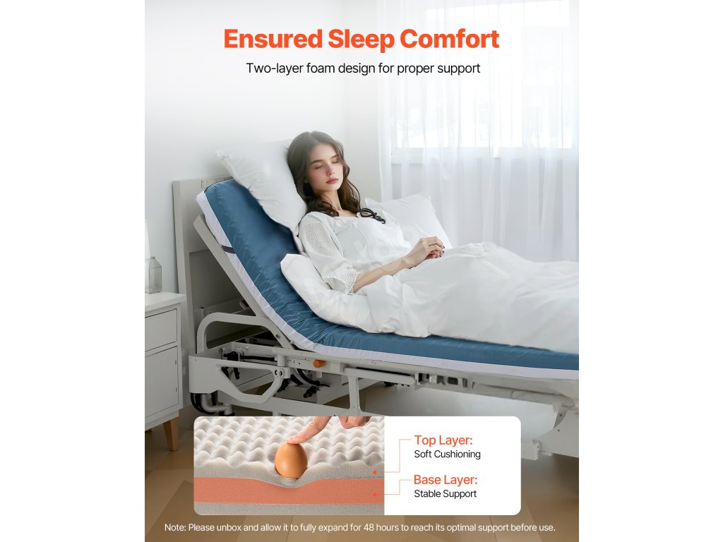 Tato dvouvrstvá pěnová matrace pro nemocniční lůžka je vybavena vícevrstvým systémem pro snížení tlaku - tlumícím, relaxačním a podpůrným. Rovnoměrně rozkládá tlak po celém těle, čímž redukuje nepříjemné tlakové body, takže si zachováte pohodlí i během dlouhého odpočinku.
