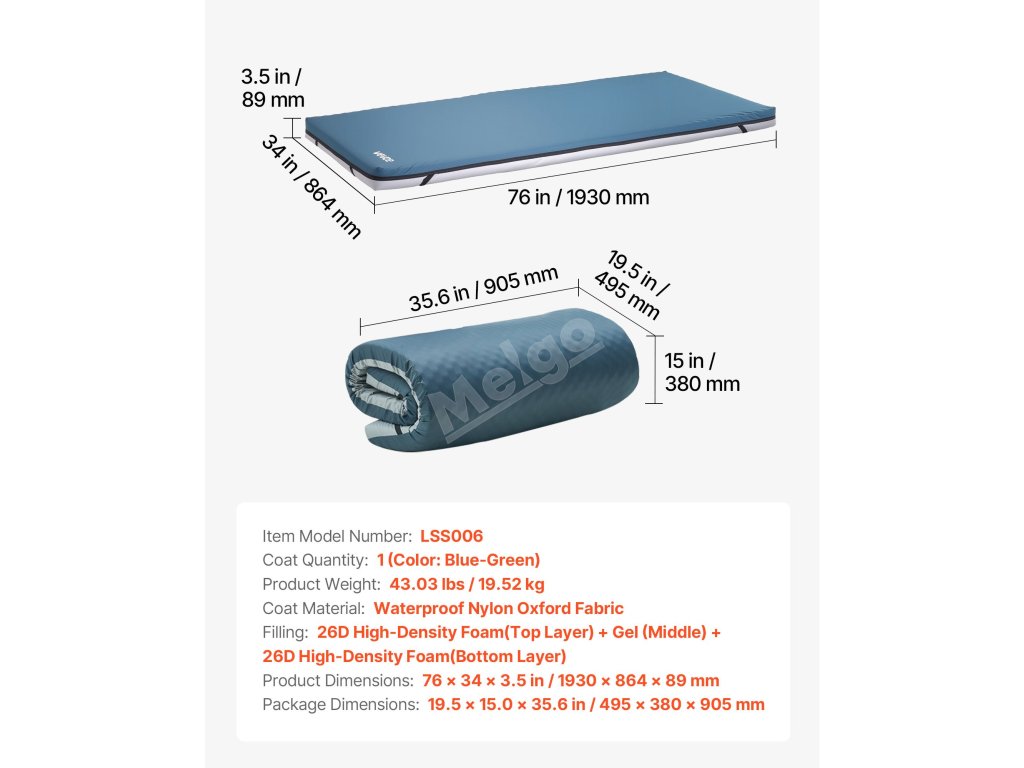 | Rozměry výrobku | 76 x 34 x 3,5 palce / 1930 x 864 x 89 mm |