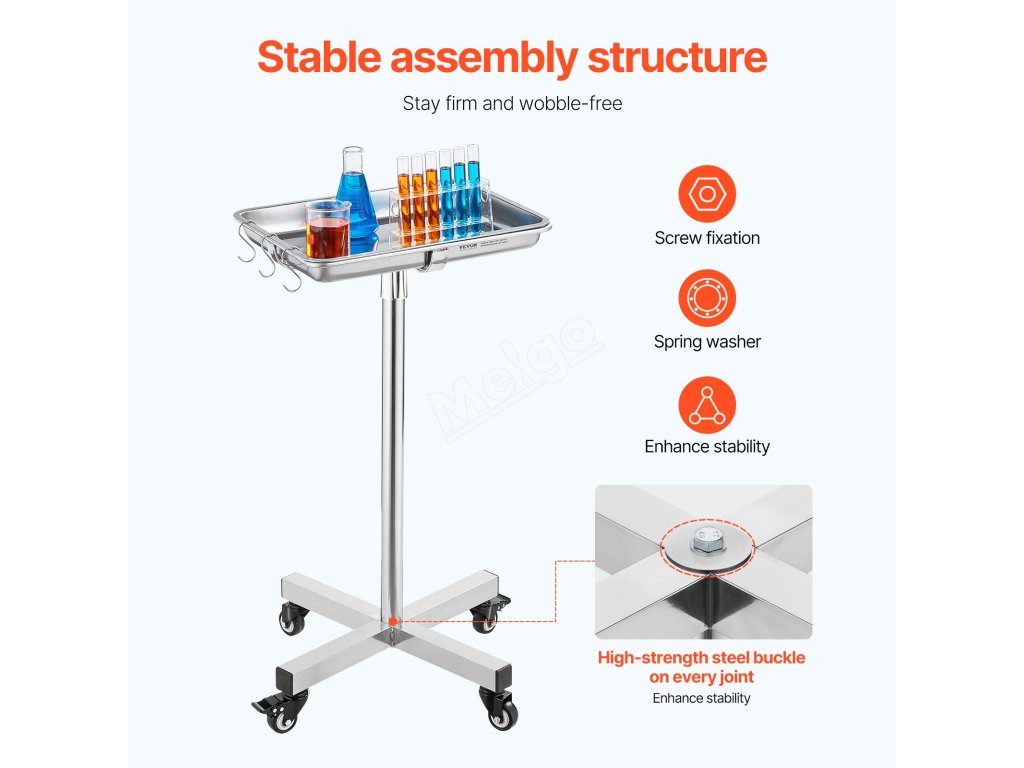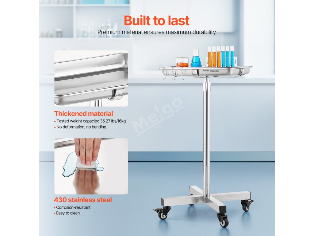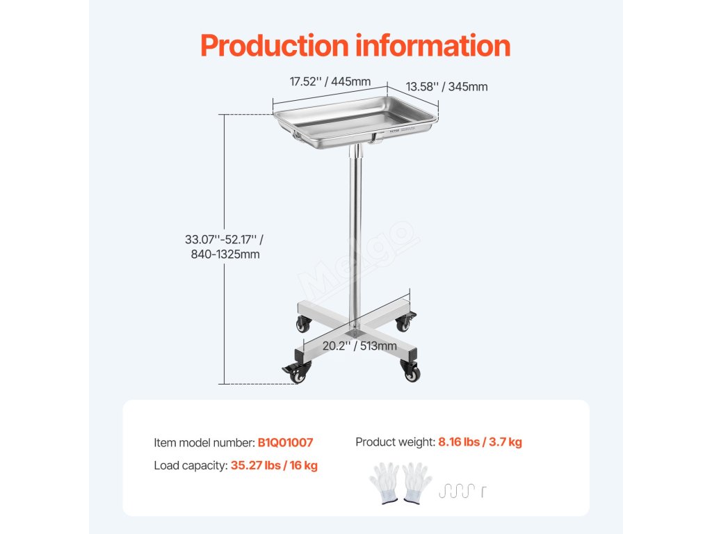 Mayo stolek nerezový nosnost 35 lbs výška 25.2"-39.8" s kolečky